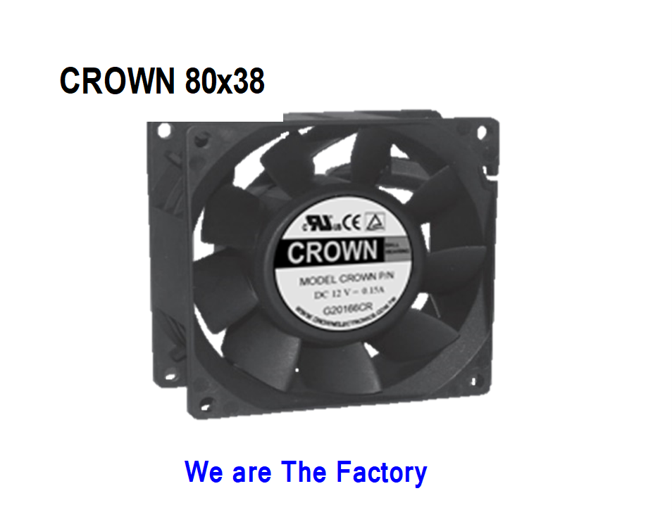 Ventilateur axial CC Crown AGB08038_24M avec roulement à billes et pales en plastique, support OEM pour usage industriel