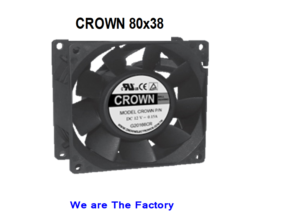Ventilateur axial DC Crown 8038 T2 pour purificateur d'air de voiture et climatiseur