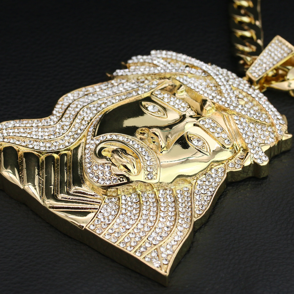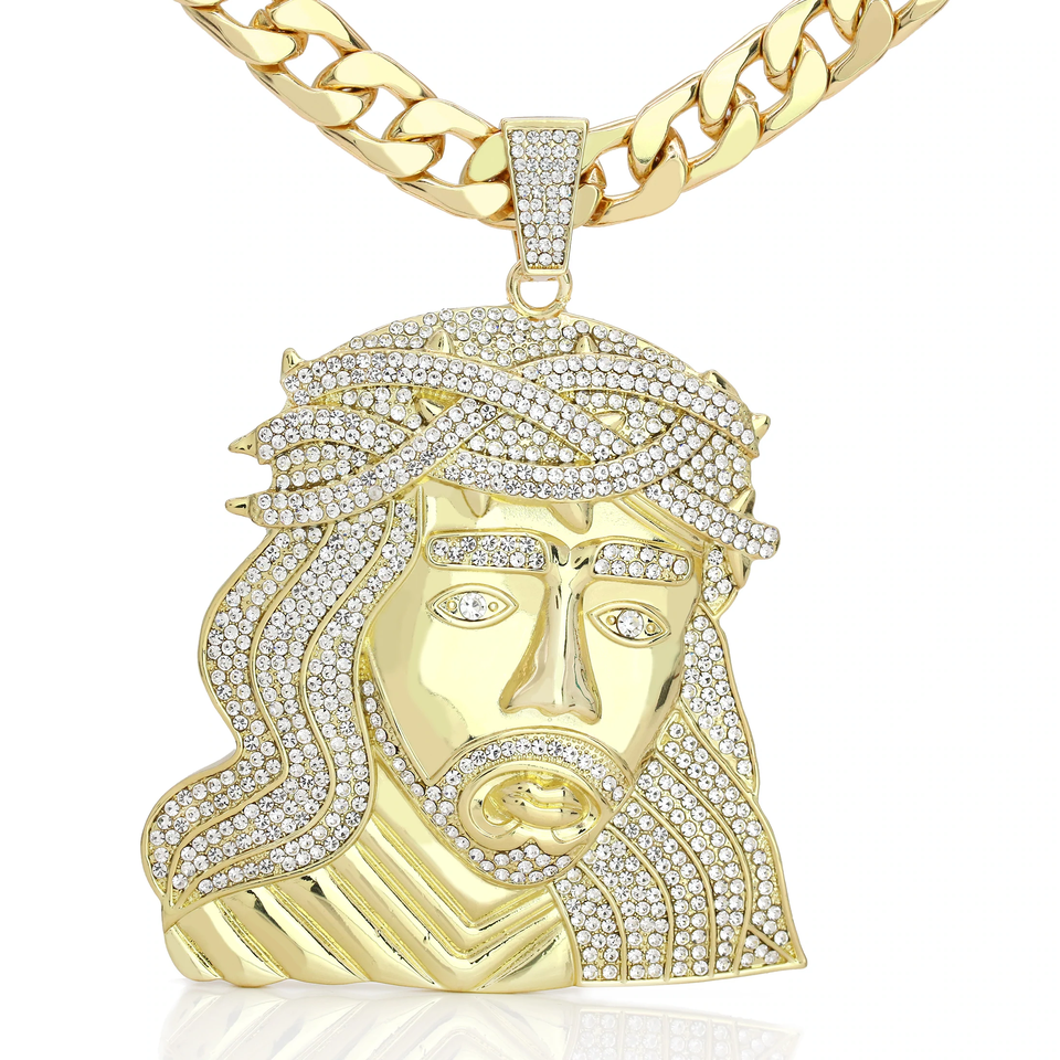 Couronne jésus large visage forme Hip Hop certifié pendentif en or 14MM 26 "chaîne cubaine collier bijoux cadeau pour votre petit ami