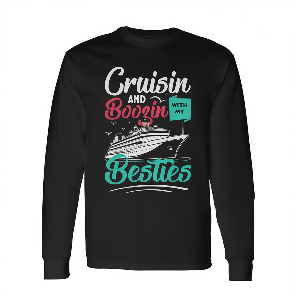 T-shirt à manches longues Cruisin And Boozin With My Besties, chemise pour couples et amis en vacances
