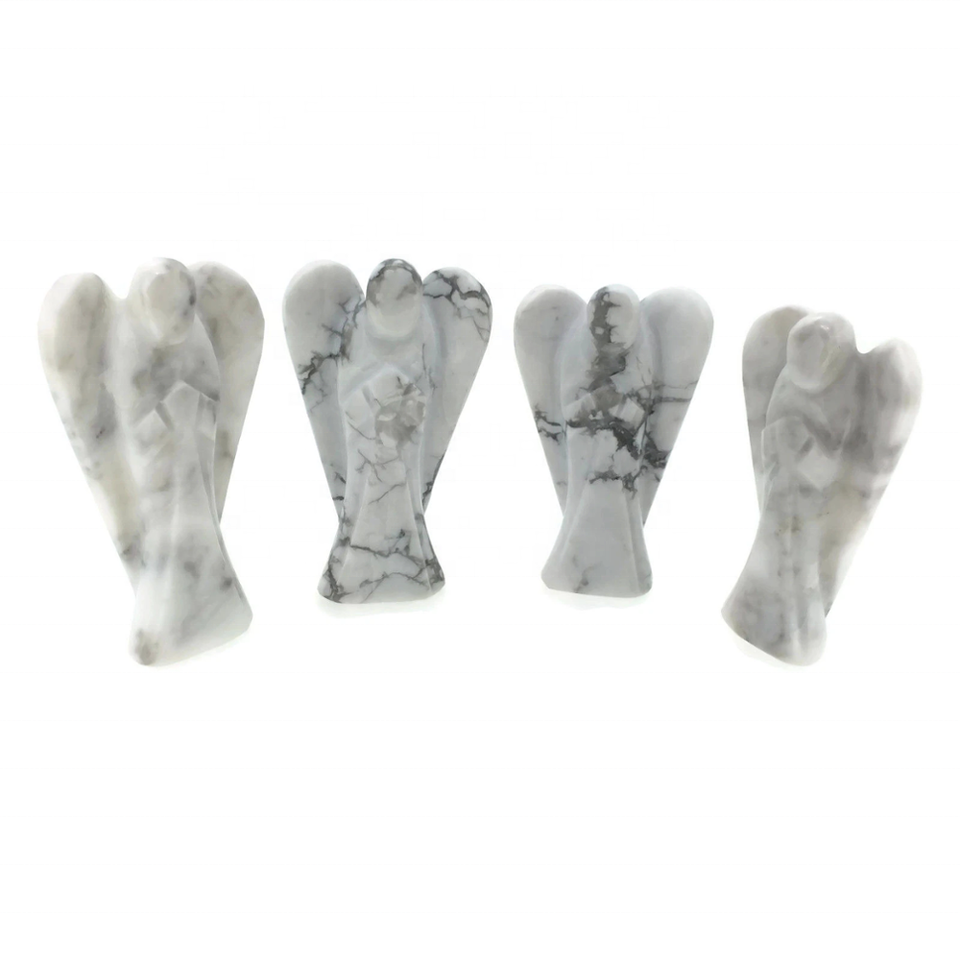 Cristal ange blanc howlite sculpture cristal 2 à 2.5 pouces pierre guérison pierres précieuses en vrac ange figurine pour la décoration de la maison