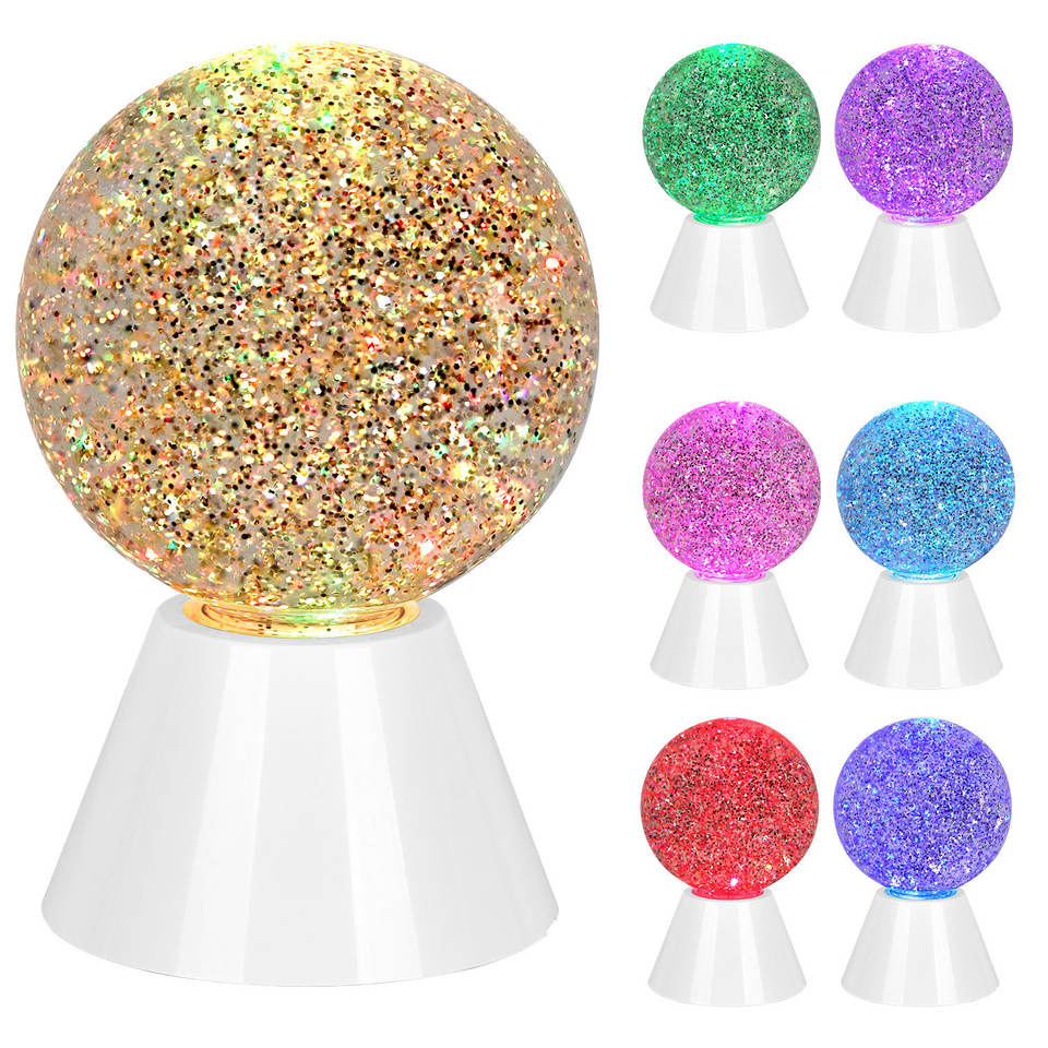 Boule de cristal lumineuse, ornement d'ambiance liquide avec batterie, recharge, paillettes décoratives, cadeau lumineux, veilleuse