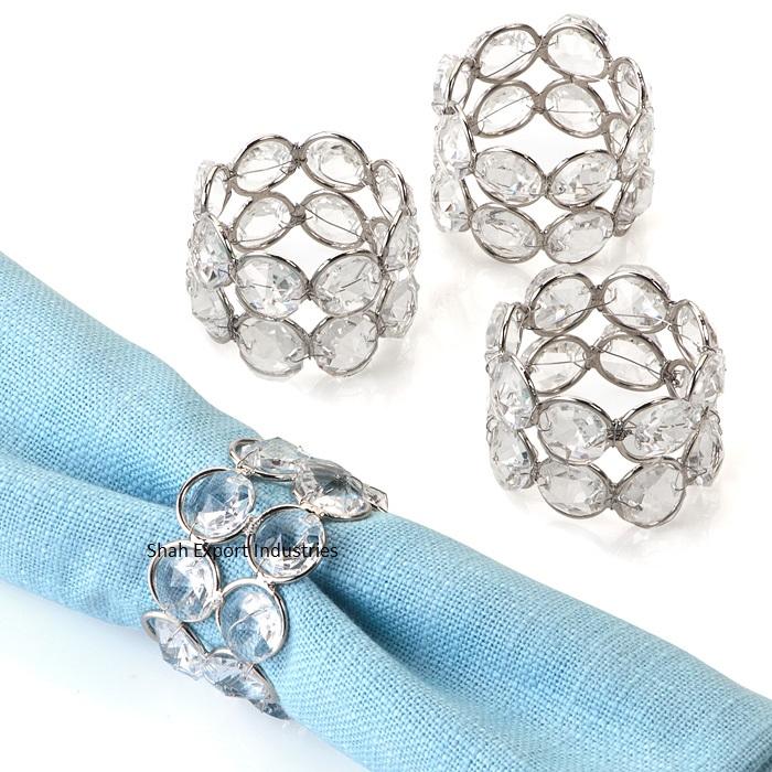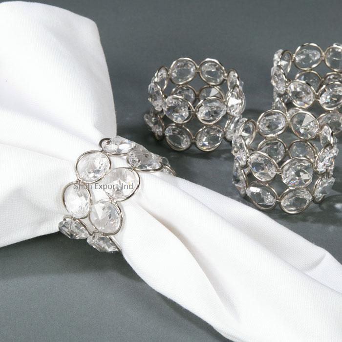 Anneaux de serviette en argent perlé en cristal artisanat porte-serviettes scintillants pour la décoration de table de dîner de fête de mariage