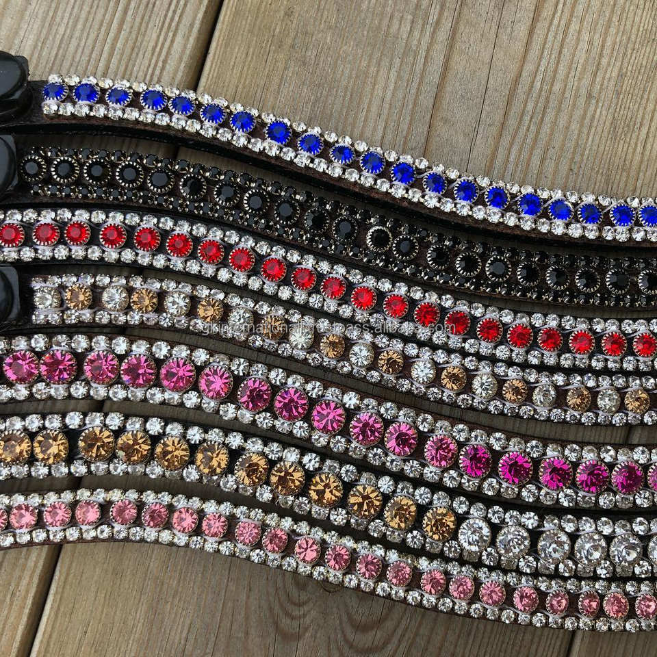 Bande de front en cristal 3 rangs de haute qualité faite à la main meilleure qualité bande de front de cheval en cuir pur avec des cristaux personnalisés 3 rangs bling