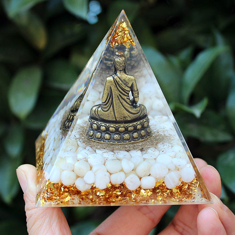 Statue de Bouddha en résine en forme de pyramide de cristal, décoration d'intérieur, ornement artistique de bureau, forme de Bouddha Lotus