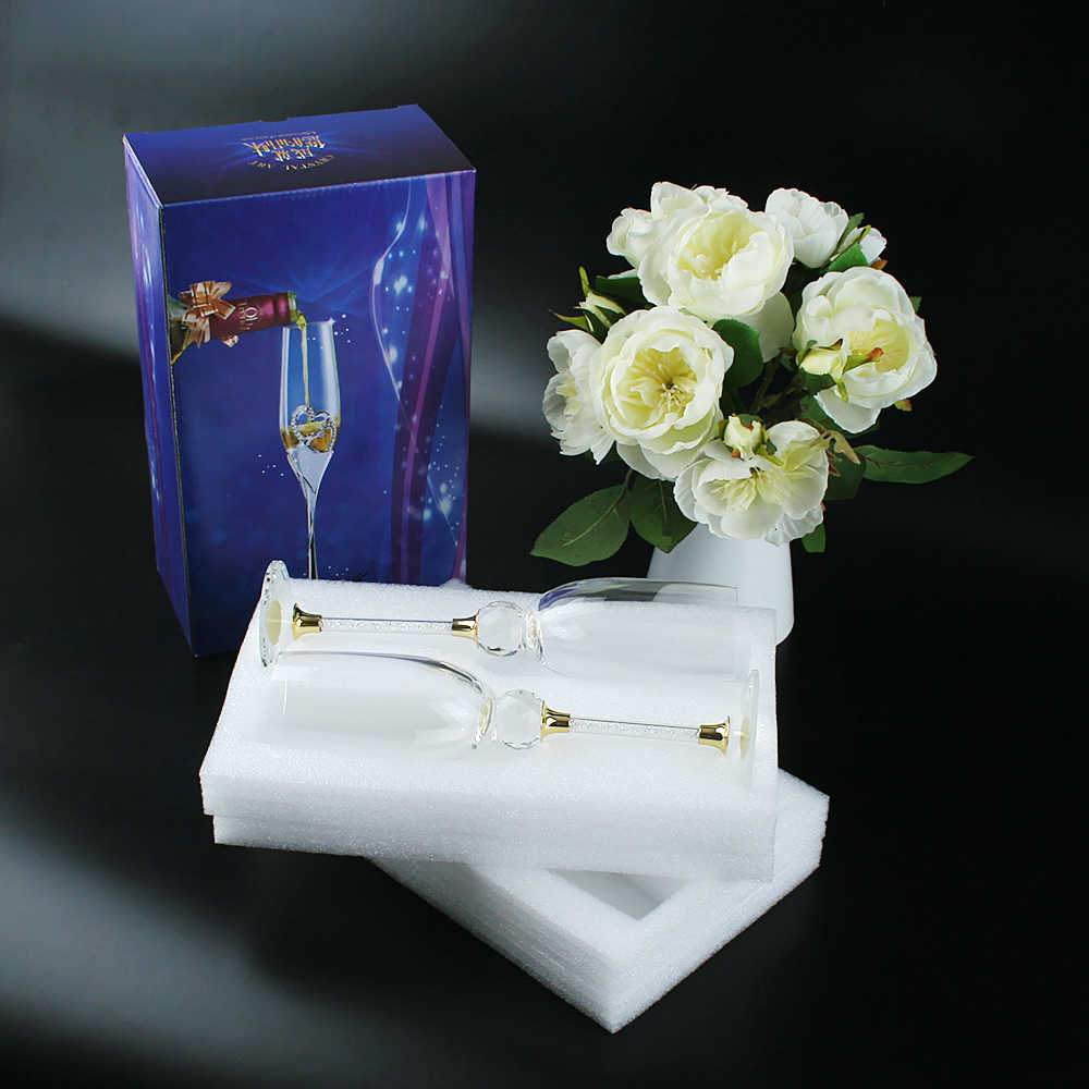 Ensemble de flûtes transparentes en cristal 2 verres à champagne à cylindre de vin mousseux à tige de qualité supérieure de 6 oz pour mariage