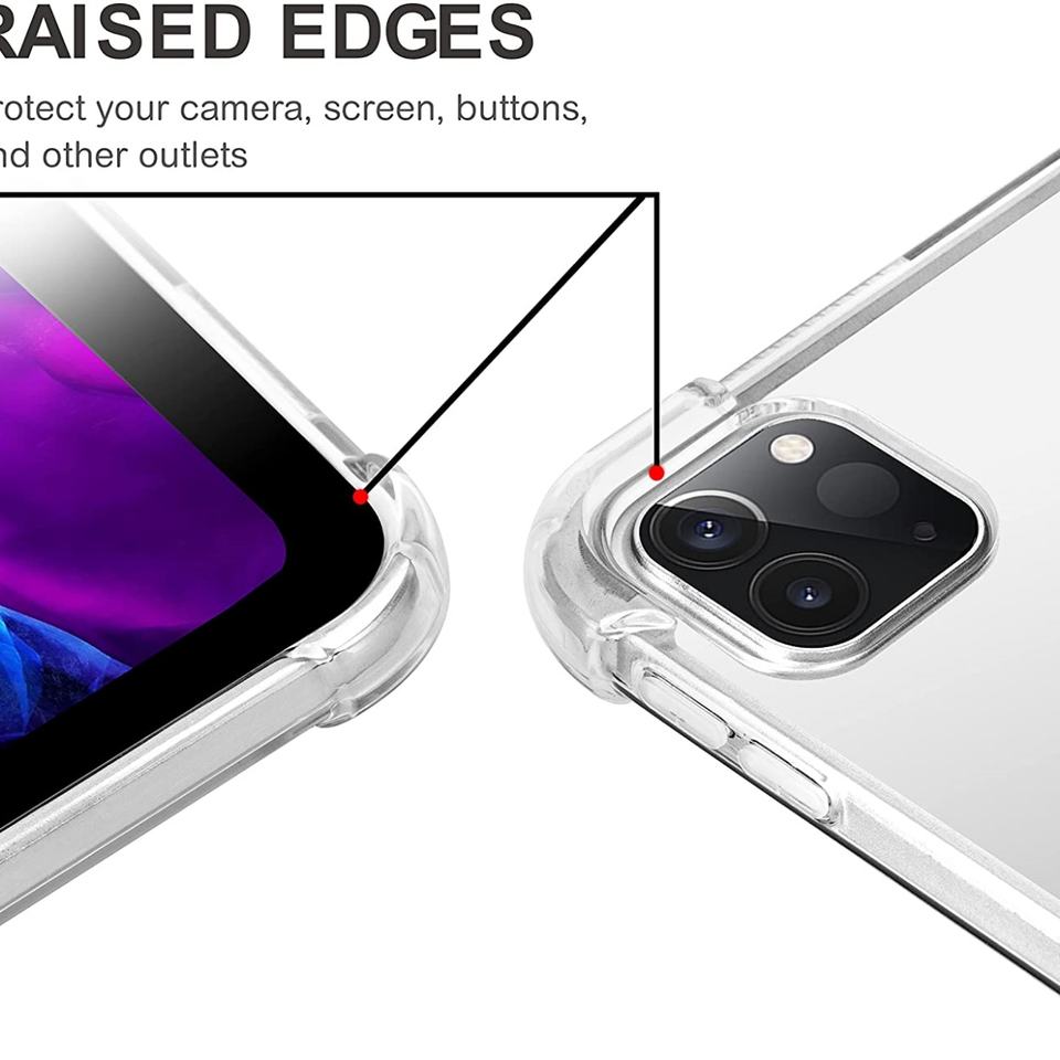 Étui de tablette transparent noir en TPU souple pour iPad Pro 12.9 2021, avec coussinets antichoc, résistant aux chocs et à l'eau