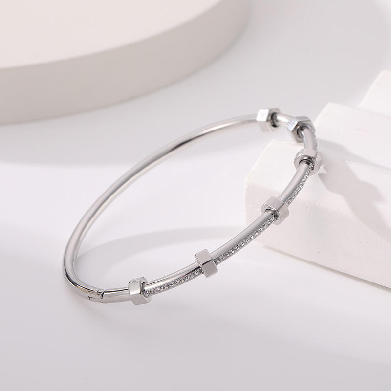 Bracelet manchette incrusté de diamants en cristal Bracelet pour femme en diamant d'eau en acier inoxydable