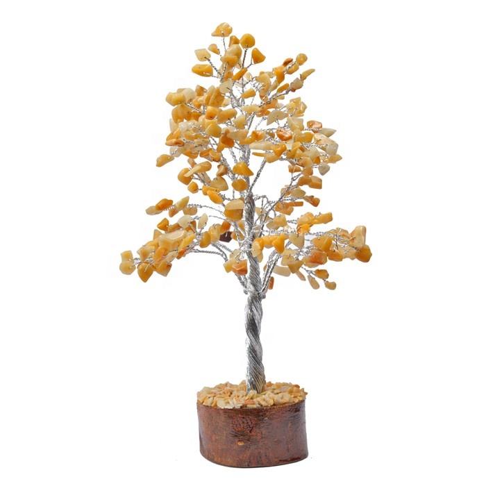 Arbre de quartz doré naturel de guérison en cristal 300 puces d'artisanat en pierre semi-précieuse avec arbre en fil d'or