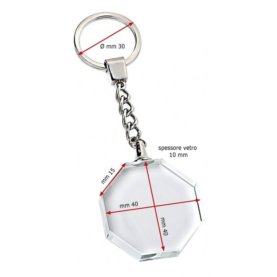 Porte-clés en cristal octogonal 40x40 mm, pendentif transparent, chaîne en métal, porte-clés