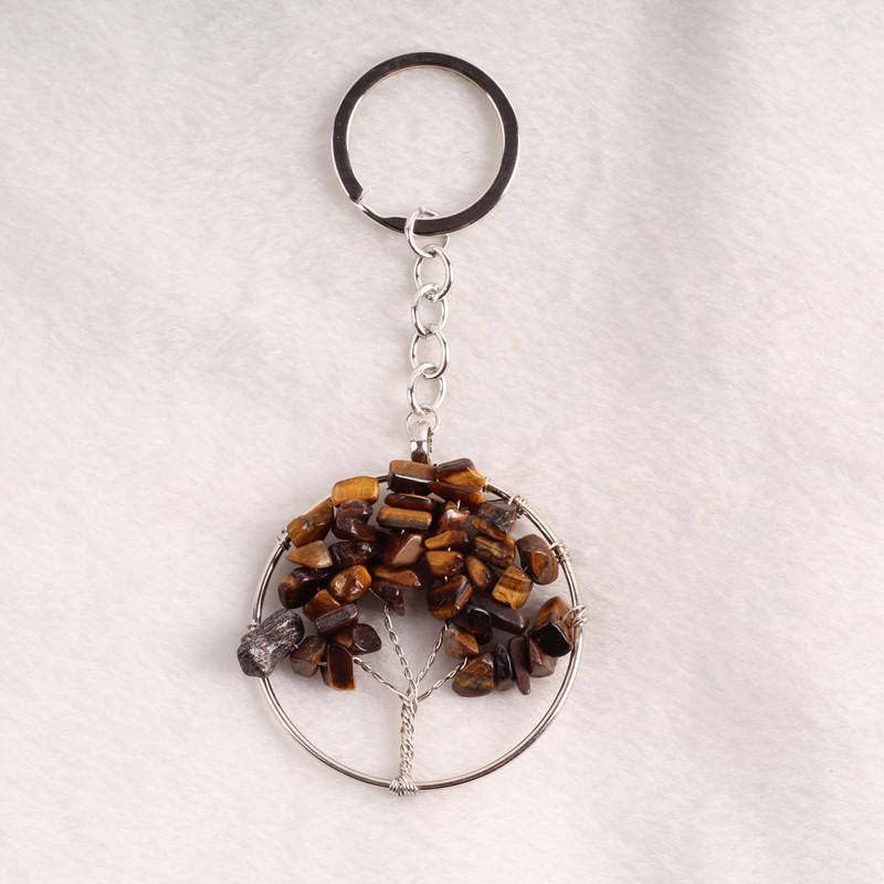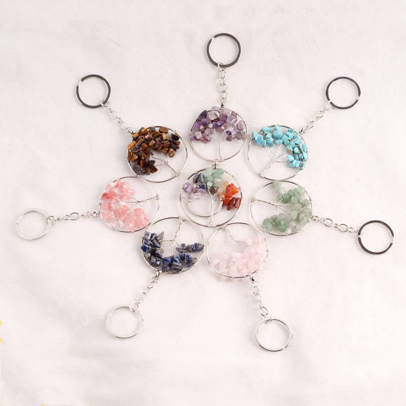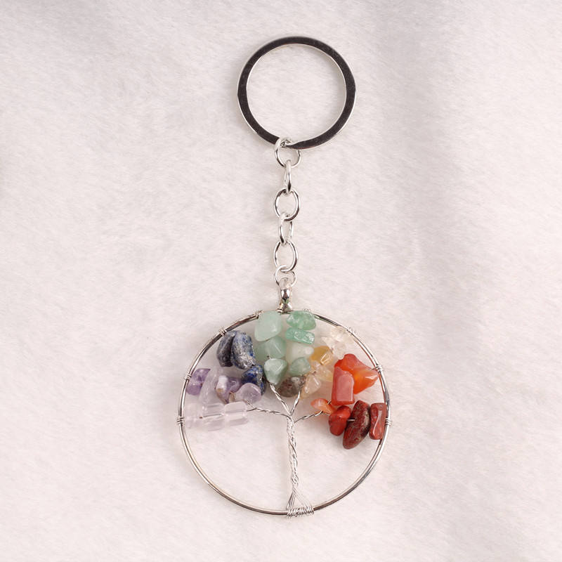 Porte-clés en cristal avec arbre de vie, 7 chakras, accessoires, anneau en cristal de guérison, Protection, porte-clés pour femme
