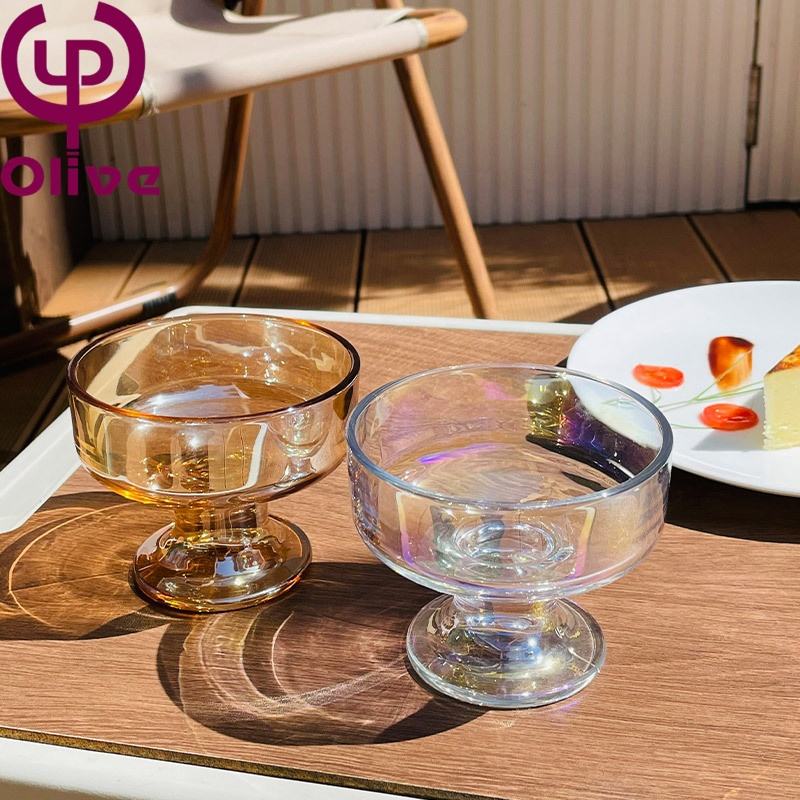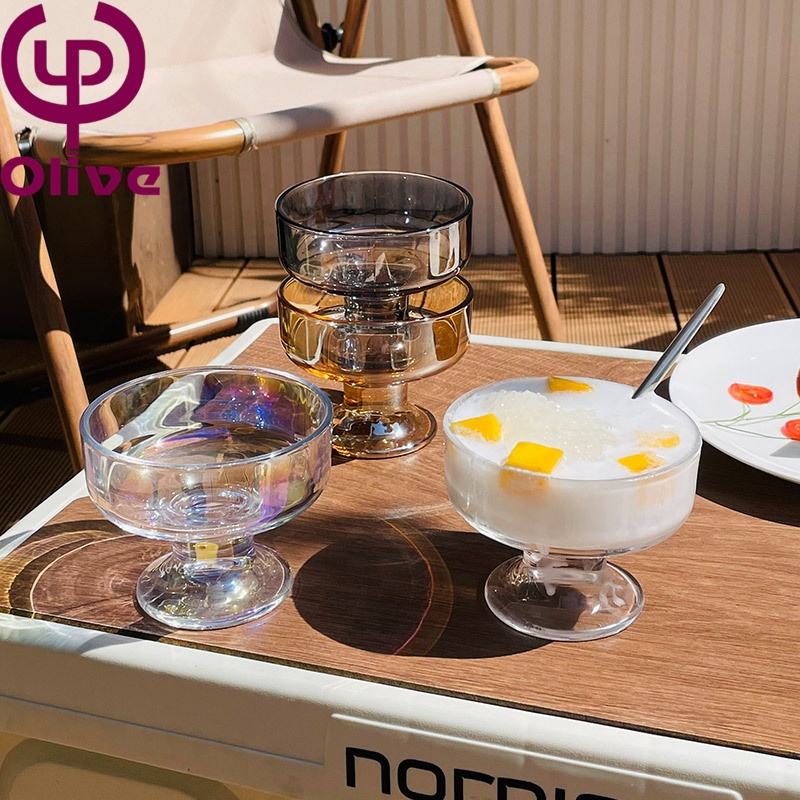 Mini bol de service à la crème glacée en cristal Gris ambré Bol à dessert à petits pieds Pudding Yaourt Milkshake Salade de fruits Tasse à boisson mélangée
