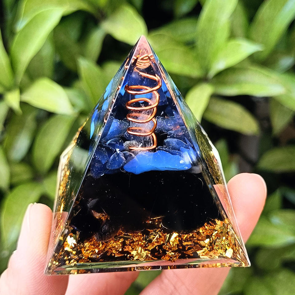 Pyramide en résine époxy avec galets de cristal, ornement de bureau, décoration d'aquarium, cadeau