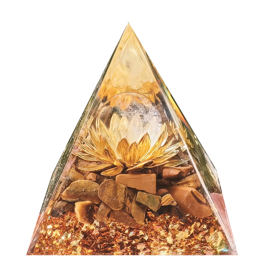 Pyramide en résine époxy avec galets de cristal, ornement de bureau, décoration d'aquarium, cadeau