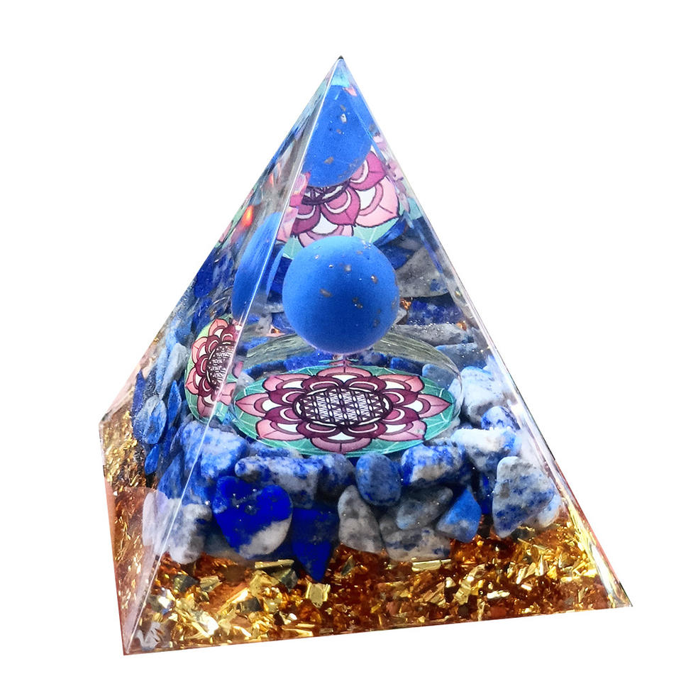 Crystal Pebble Pyramid Resin Epoxy Craft Blue Lotus Floral Pattern Home Decoration Desktop Ornament Gift