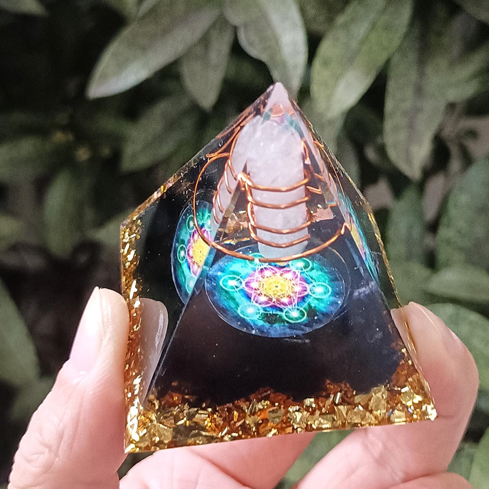 Pyramide en résine époxy avec pierres de cristal, ornement de bureau avec fonction lumineuse pour la décoration d'aquarium et la décoration de la maison, cadeau