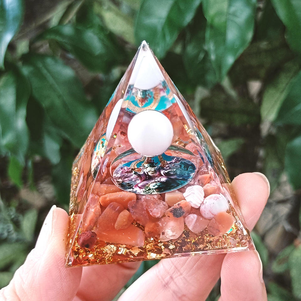 Pyramide en résine époxy avec galets de cristal, ornement de bureau, décoration d'aquarium, cadeau