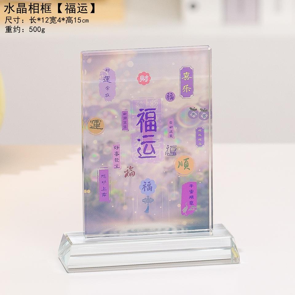 Cadre photo en cristal de style chinois, rectangulaire, impression numérique sur verre, décoration d'intérieur, cadeau porte-bonheur