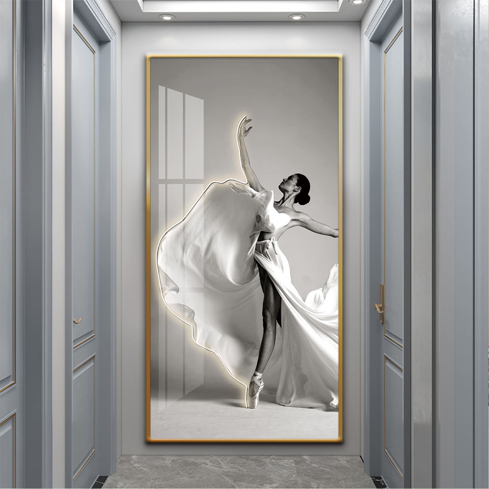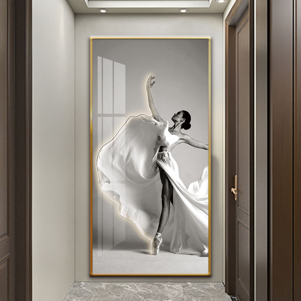 Peinture en porcelaine cristal avec lampe LED La belle ballerine dansait Décoration murale pour studio de danse Applique murale