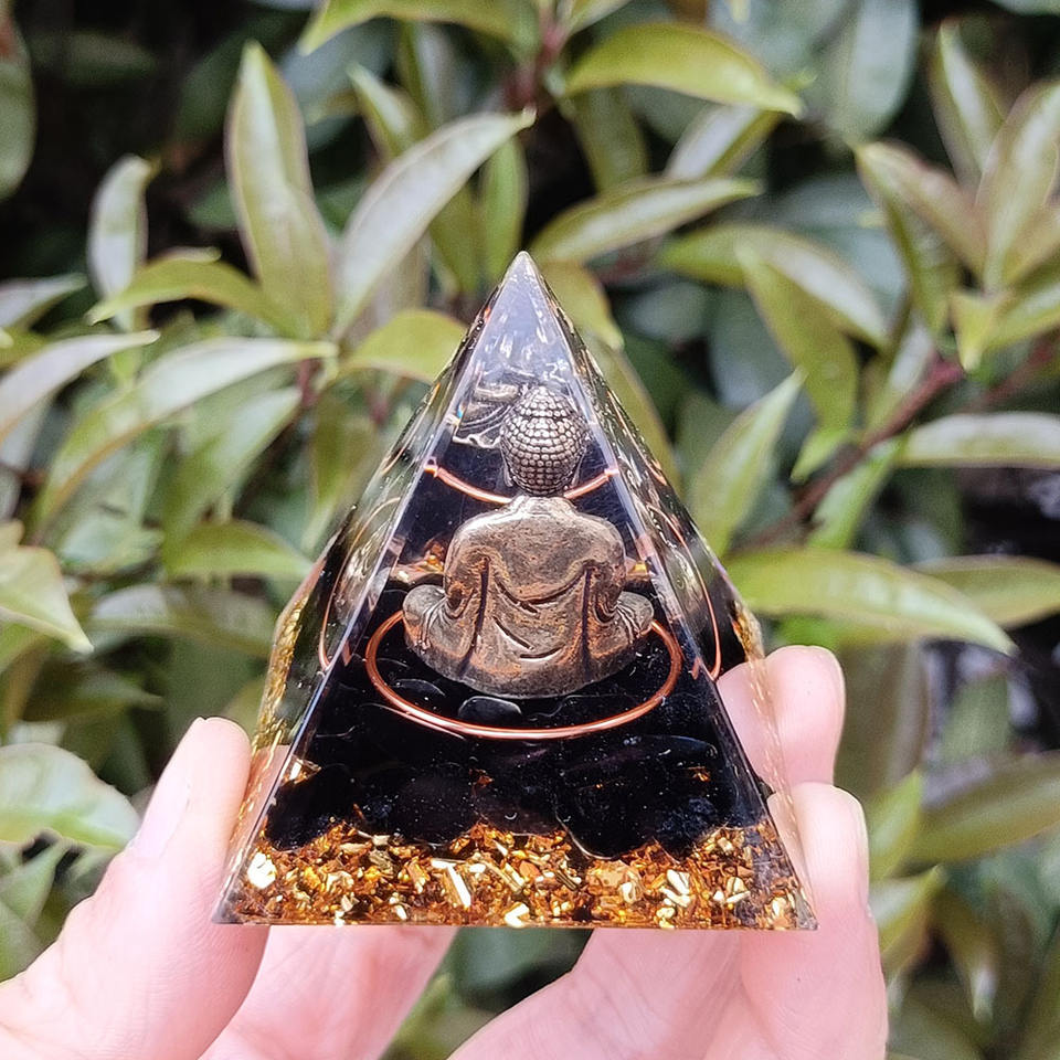 Pyramide en cristal avec statue de Bouddha gravée à l'intérieur, en résine d'obsidienne, décoration d'intérieur, ornement Feng Shui, cadeau de bureau