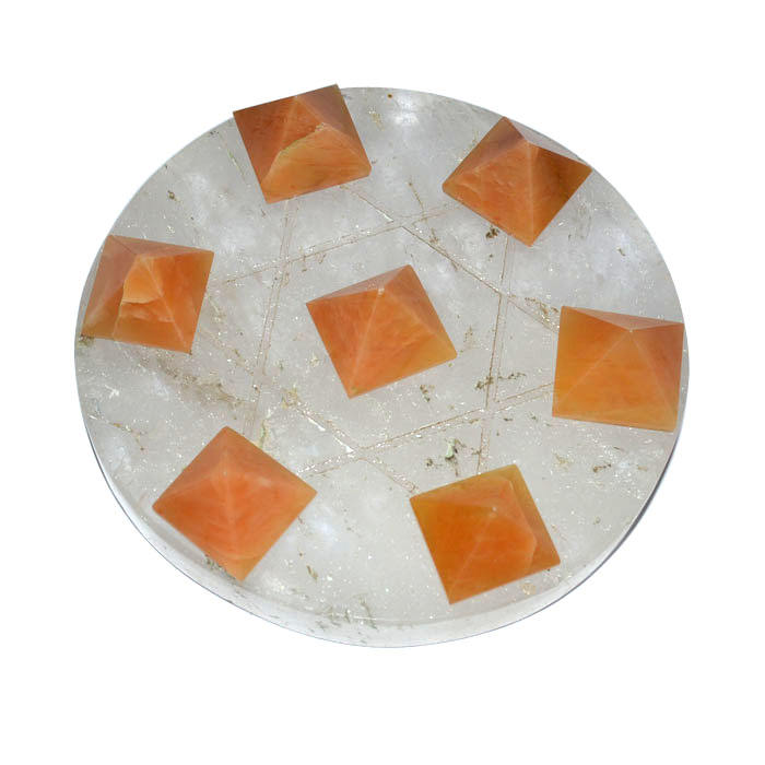 Crystal Quartz Base 7 Golden Quartz Pyramids on Star David