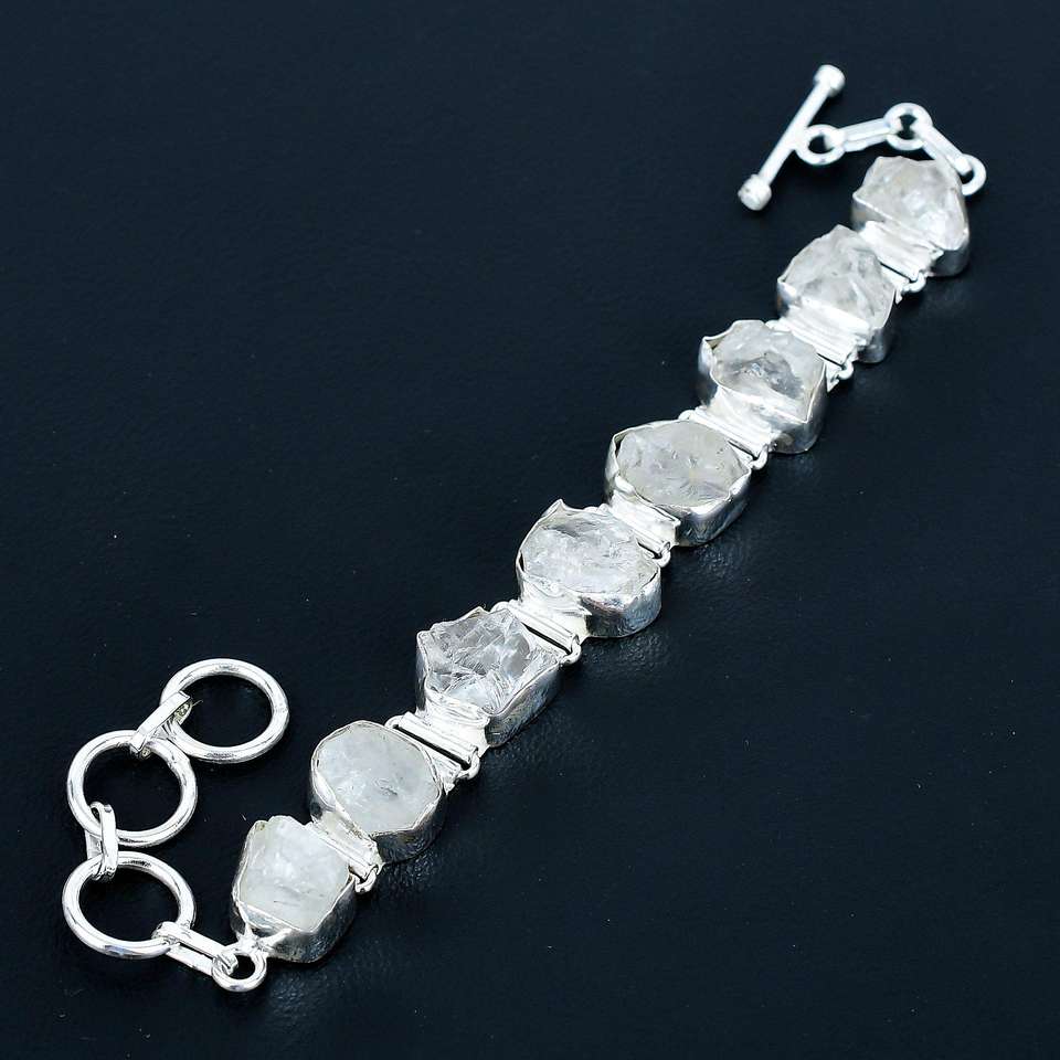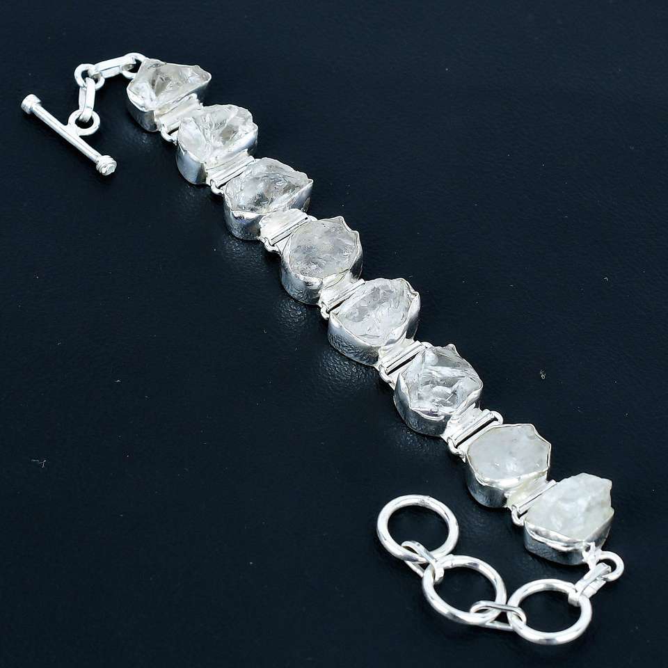 Bracelet thème amour en argent Sterling 925 fait à la main breloque fine avec cristal Quartz pierre précieuse brute beau bracelet en cristal