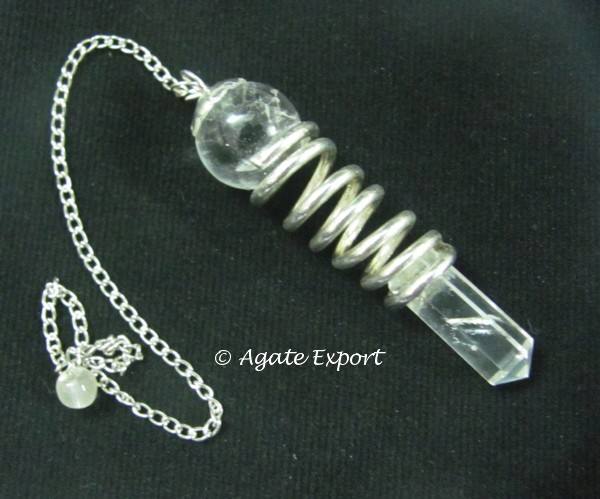 Pendule en spirale à Quartz de cristal naturel, avec chaîne