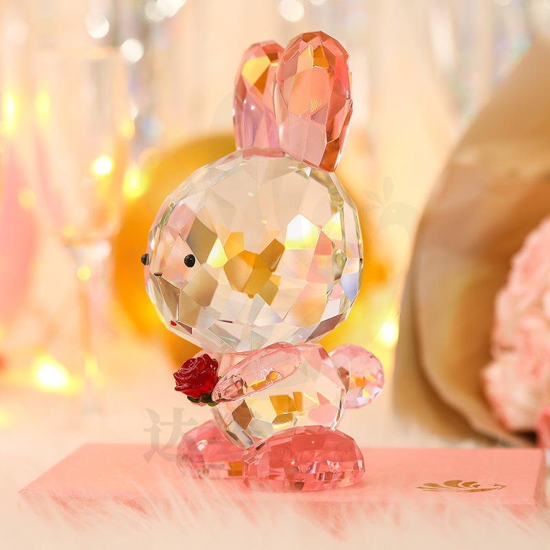 Ornement du zodiaque en forme de lapin en cristal rose avec rose rouge, cadeau de la Saint-Valentin, décoration créative