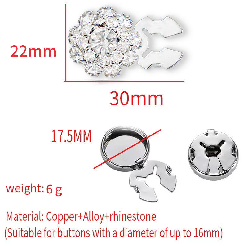 Boutons décoratifs en strass de cristal ronds en forme de fleur pour femmes, bijoux amovibles pour chemises, accessoires de costume de mariage