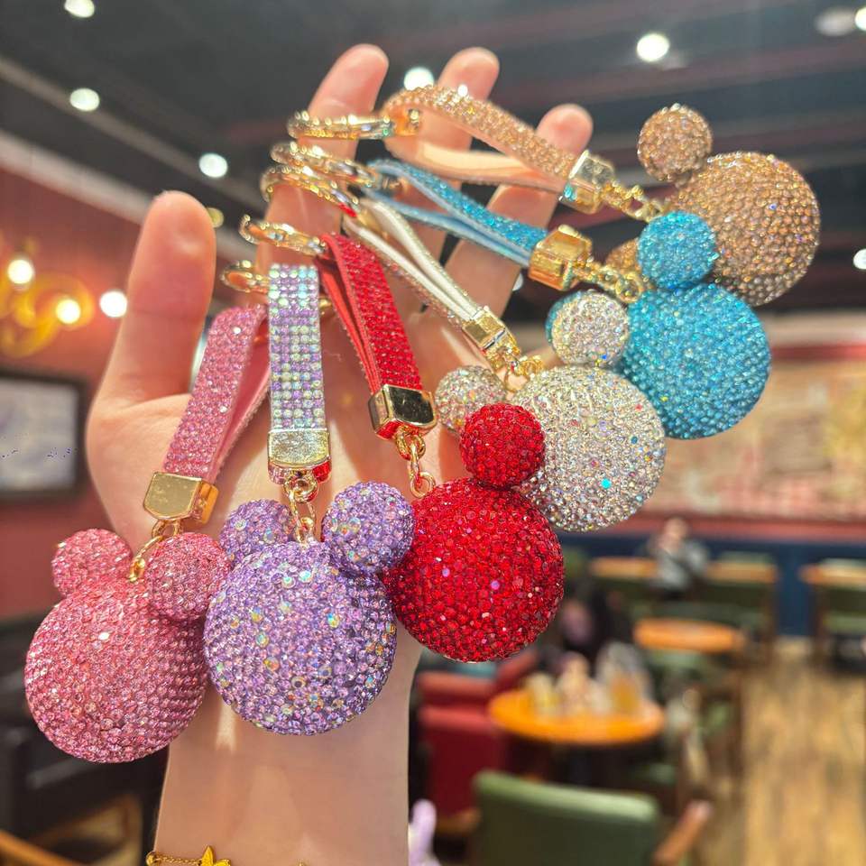 Porte-clés Mickey en strass de cristal, forme 3D, léger, accessoires en métal brillant, pendentifs, cadeaux pour femmes, sac à main