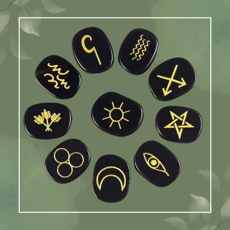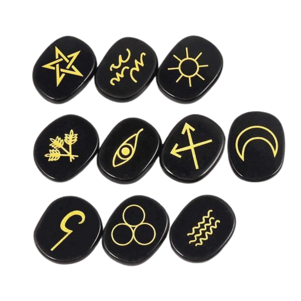 Ensemble de runes en cristal-Ensemble de runes d'agate noire pour la divination-Ensemble de runes d'agate noire naturelle pour fournitures d'autel