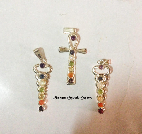 Pendentif en argent avec chaîne en argent, cristal des sept chakras Ankh, qualité supérieure, cadeau d'affaires, acheter chez Amayra Crystals Exports