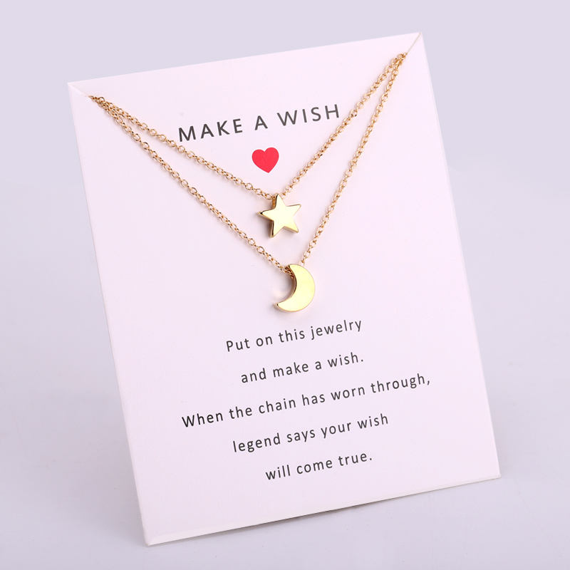 Bijoux pour femmes, carte de vœux, en cristal rose, couronne, étoiles, lune, cœur, chaîne en strass