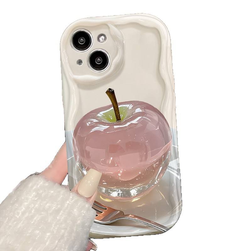 Coque de téléphone portable en silicone TPU avec motif de pomme de style cristal, bord ondulé, pour iPhone 8 X Xr Xs Max 11 12 13 14 15 16 17
