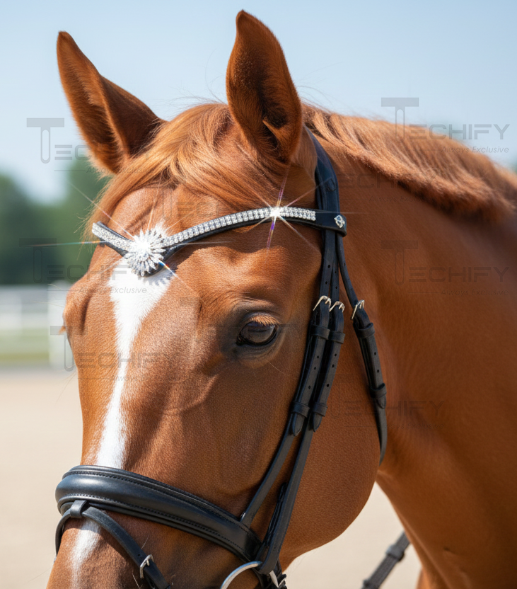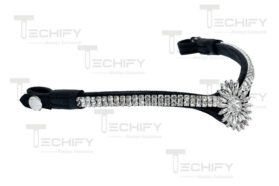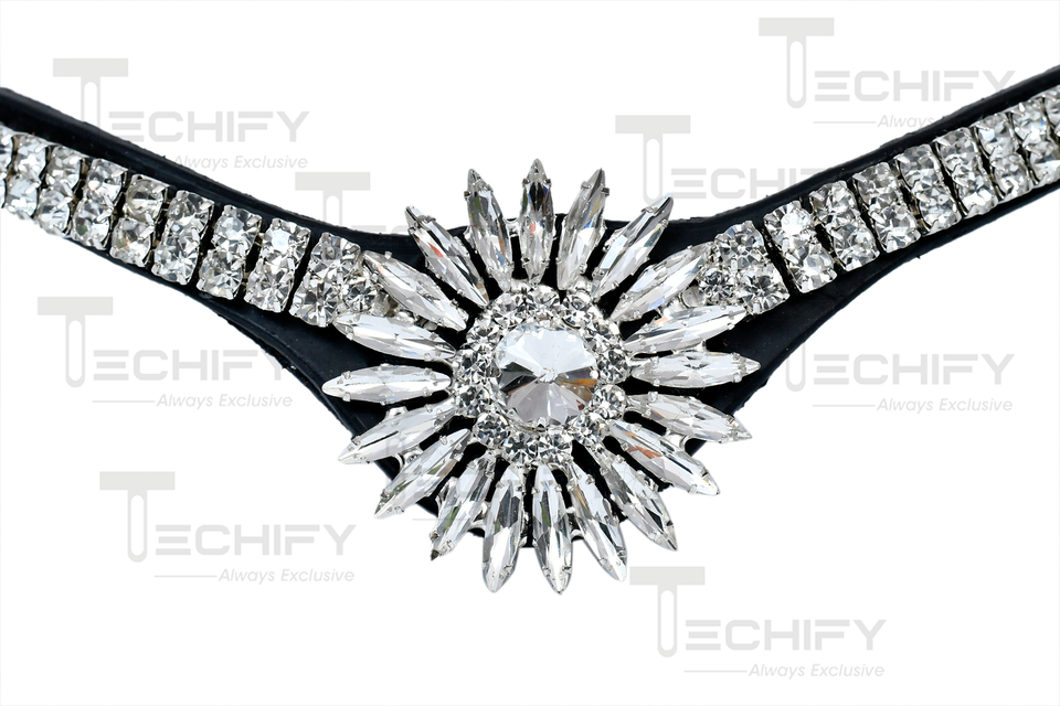 Crystal Sunflower Center Browband | Black Leather Horse Bridle Brow Band with Clear Rhinestones