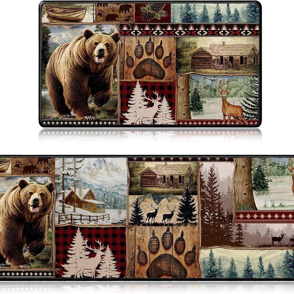 Ensemble de tapis de cuisine en velours cristal, rectangulaire, motif patchwork ours et cerf, antidérapant, absorbant, en fibre de polyester, lavable en machine
