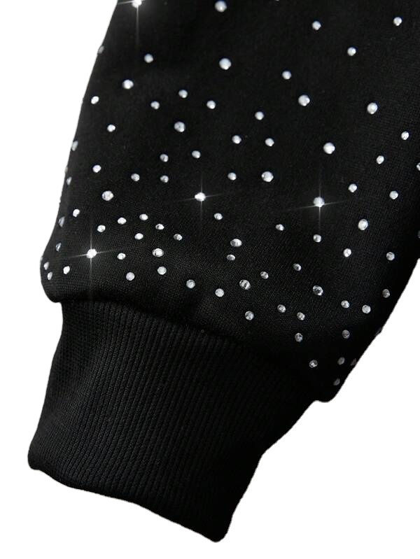 Crystal embellished hoodie unisex fleece pullover with sparkly details ideal for winter fashion and bulk production