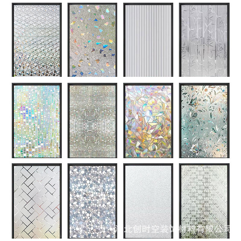Csk Iridescent Laser Glass Film Rectangular Removable Window Sticker For Kitchen Privacy Protection