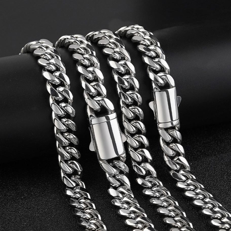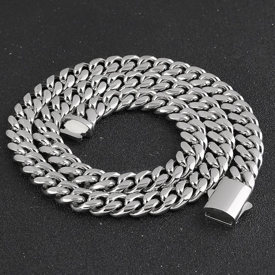 Chaîne cubaine en acier inoxydable, bijoux hip-hop urbains pour hommes, chaîne maille cubaine Miami en or 18 carats