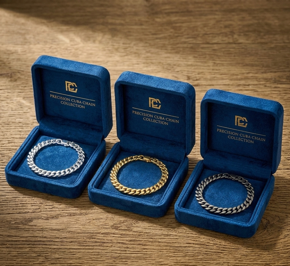 Ensemble collier et bracelet chaîne cubaine | Plaqué argent, or et or rose | Argent sterling 925 | Cadeau de luxe pour une fête | Vente en gros