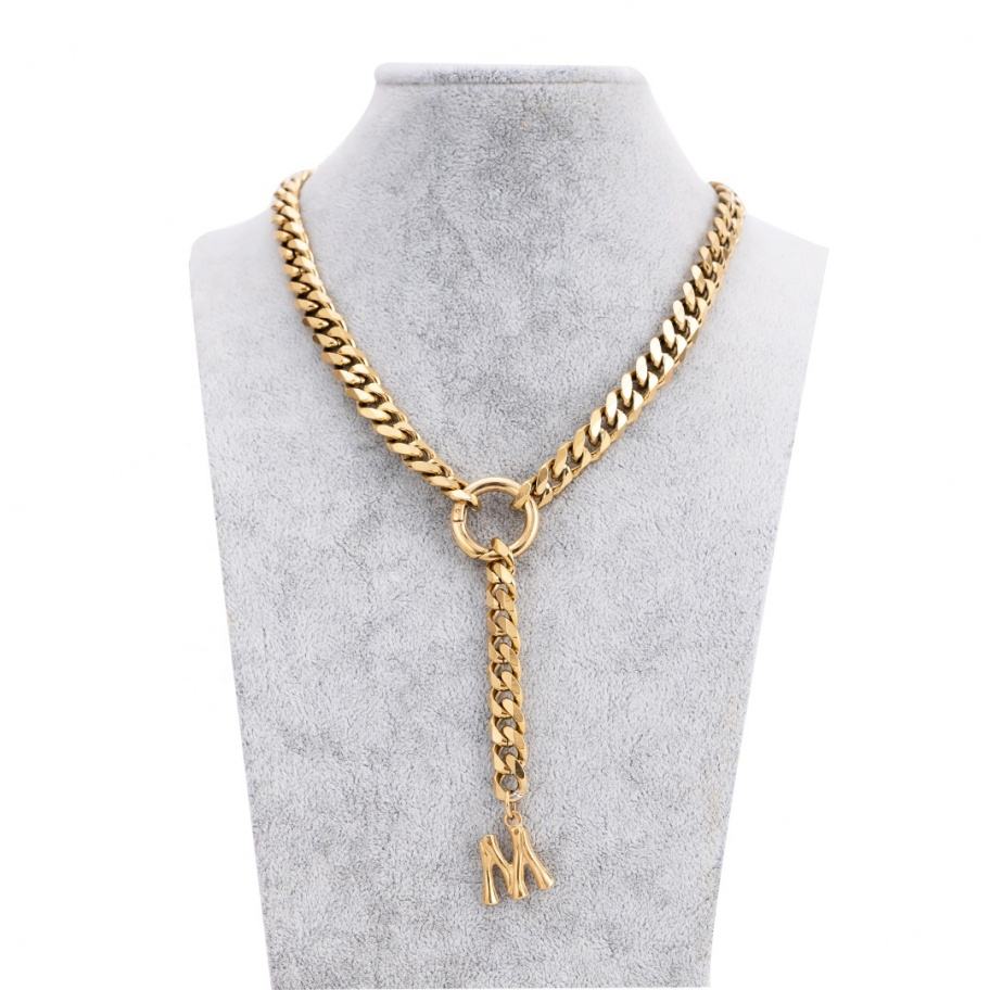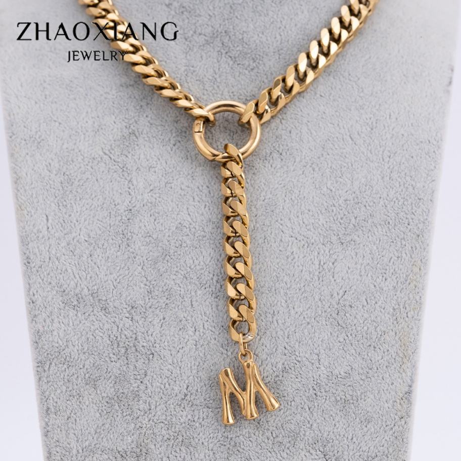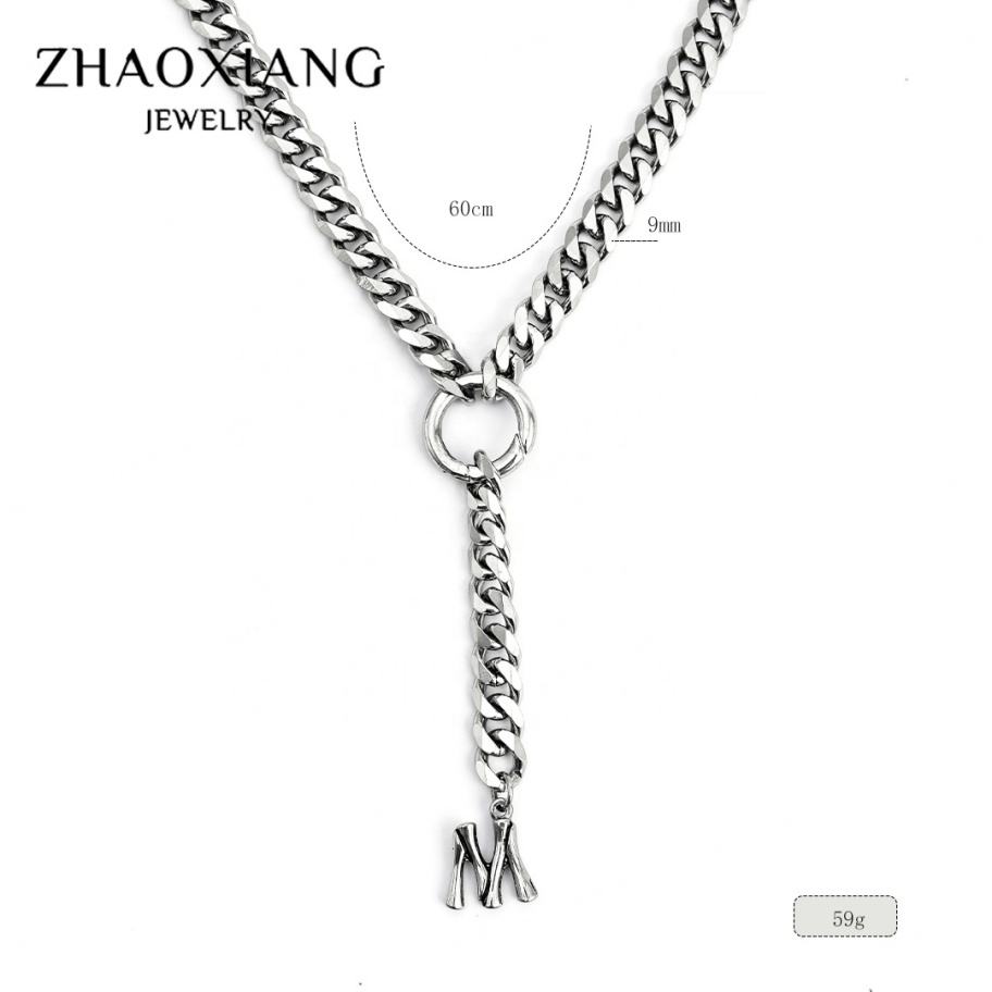 Colliers cubains personnalisés avec pendentifs lettres polies pour femmes et hommes, bijoux en acier inoxydable personnalisés