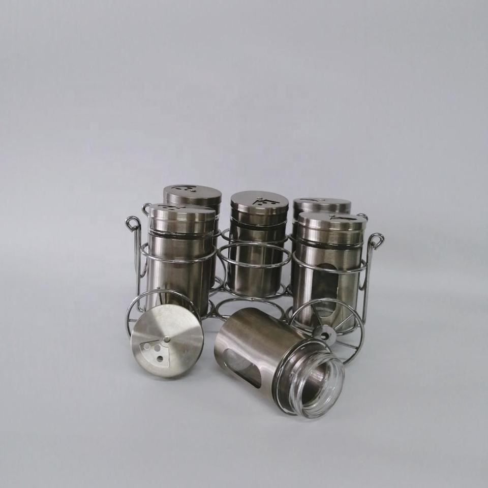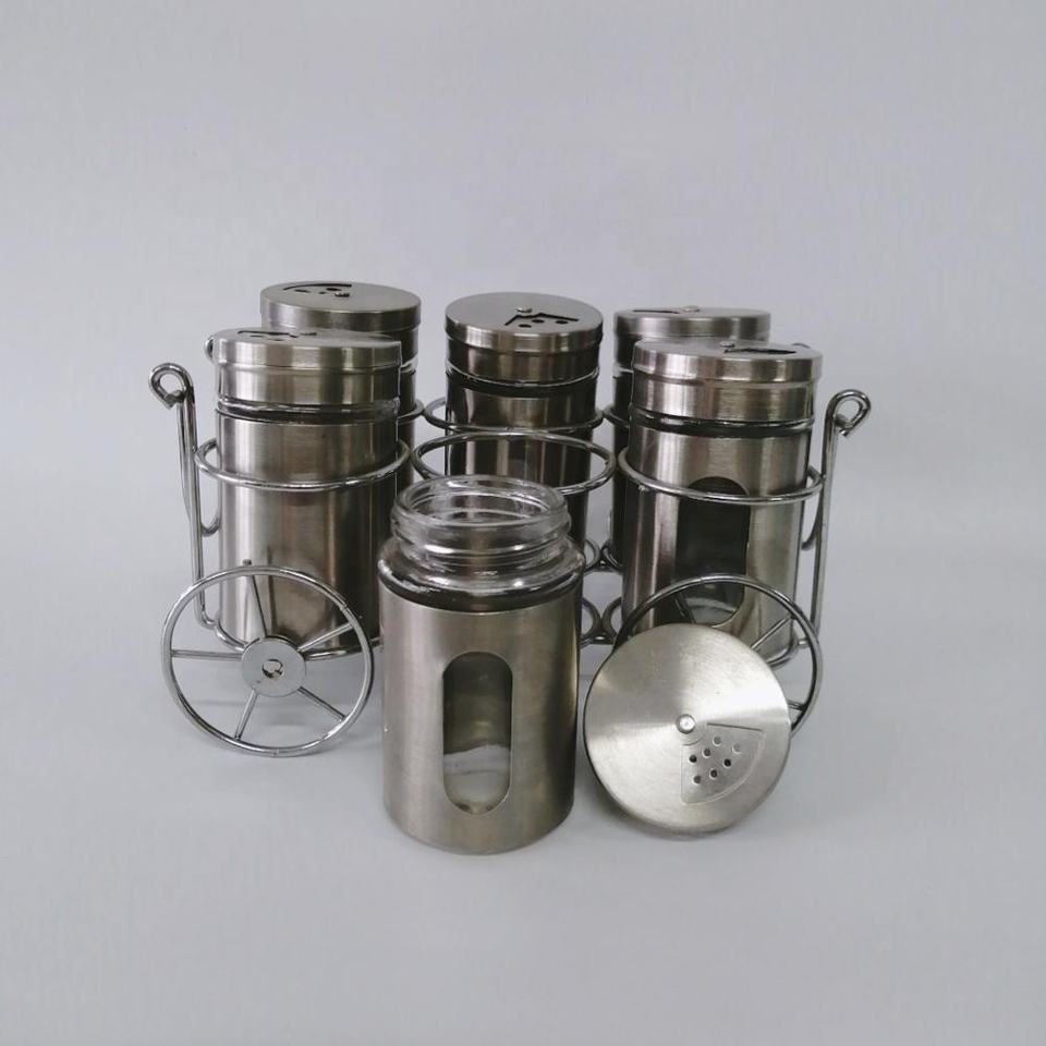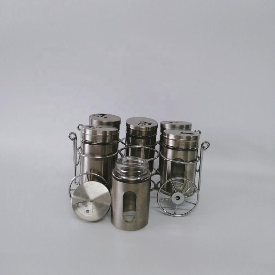 Cuisine De Stockage En Acier Inoxydable Verre Récipient À Épices Ensemble Condiment Cruet avec lot de 6