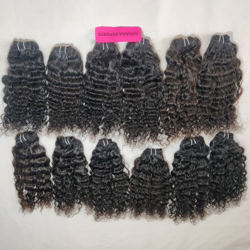 Cuticules indiennes bouclées alignées couleur naturelle femmes noires Machine Double trame cuticule alignée fabrique des cheveux humains à ondes profondes