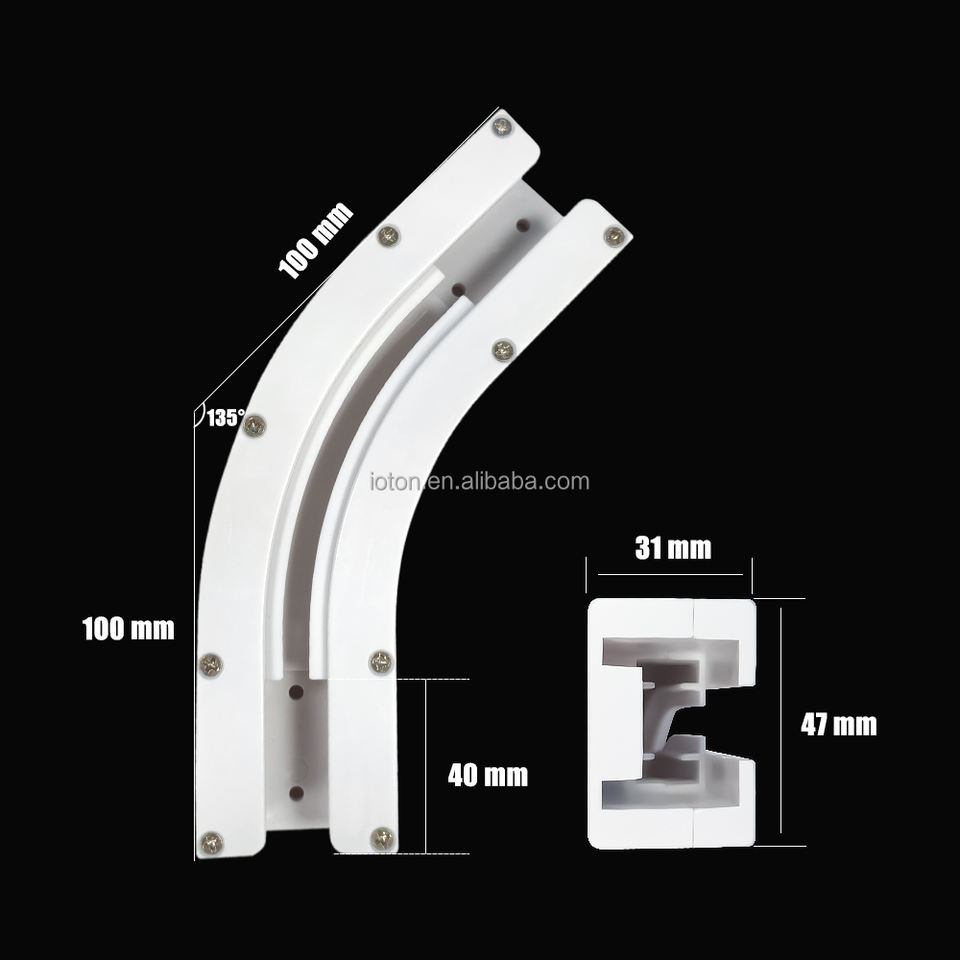 Rail de rideau électrique en plastique ABS pour fenêtres d'angle, rail courbé à 90 et 135 degrés pour rideaux coulissants