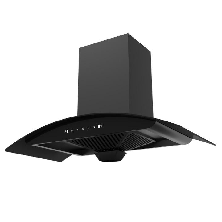 Hotte aspirante murale à verre incurvé, nouvelle conception, hotte aspirante à cheminée avec filtre à graisse à déflecteur
