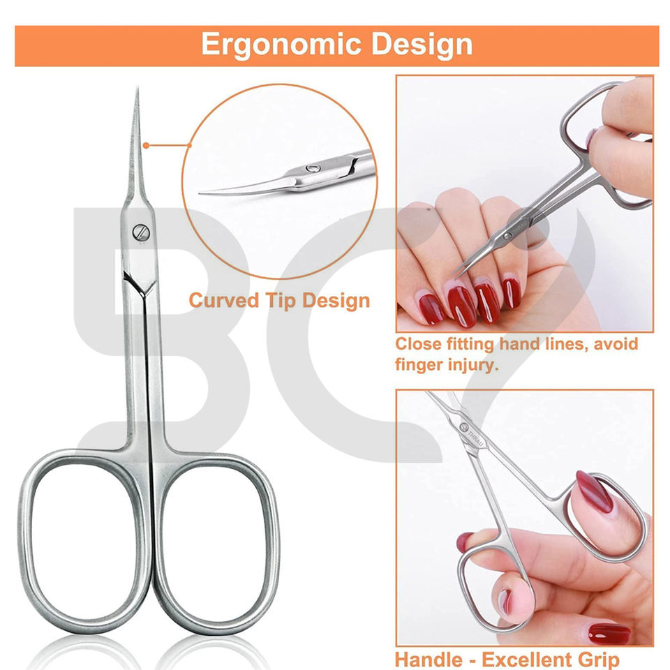 Ciseaux à cuticules pour manucure et pédicure, lame courbée, acier inoxydable, durables