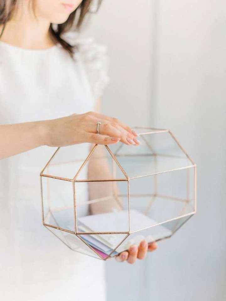 Curved Edge Design Square Shape Glass Jewelry Box with Gold Metal Frame Perfect for Storing Rings Necklaces and Fine Accessories