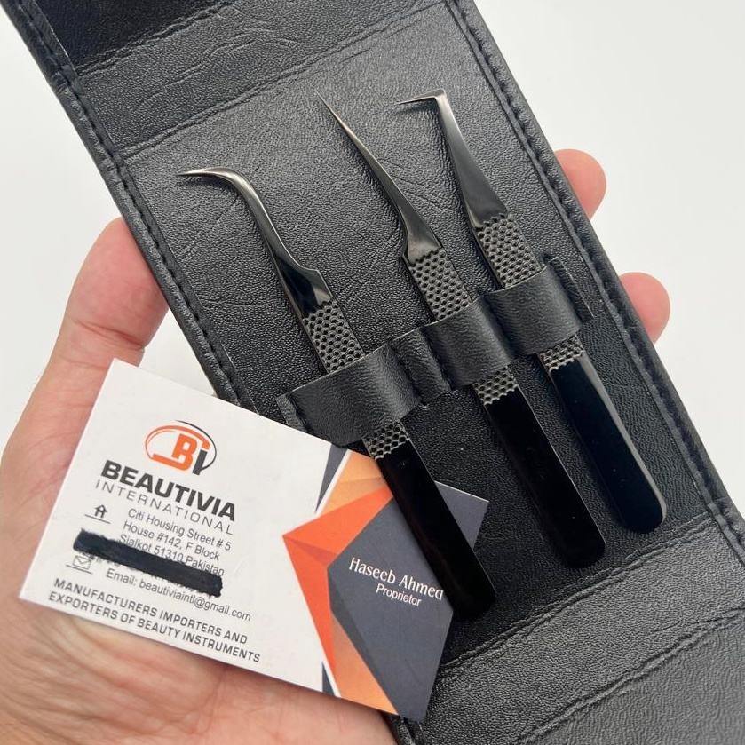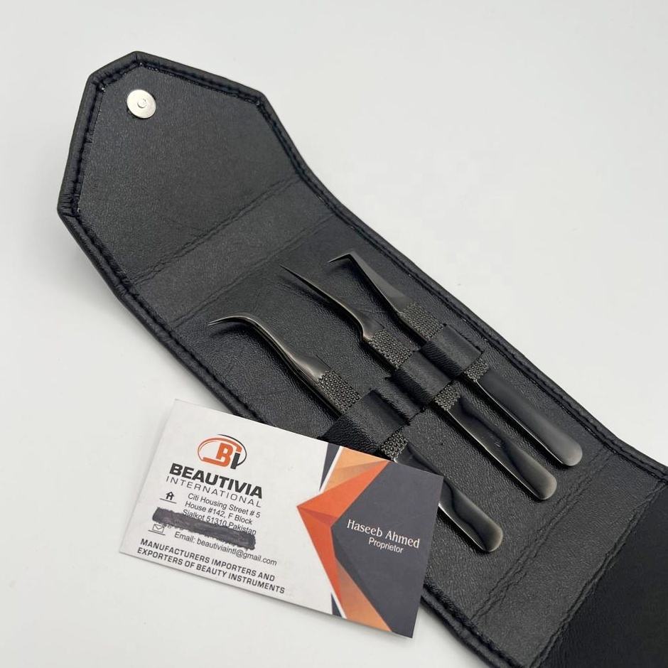 Pince à épiler d'extension de cils à isolation incurvée et volume de démarrage à 90 degrés Pince à cils en acier durable au plasma noir avec logo personnalisé