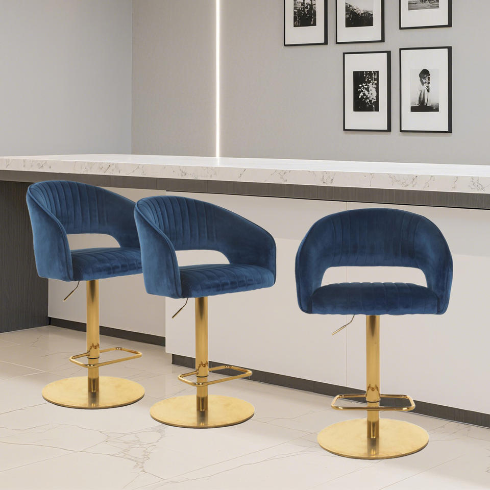 Nom du produit:Tabouret de bar pivotant réglable en velours bleu marine avec dossier creux