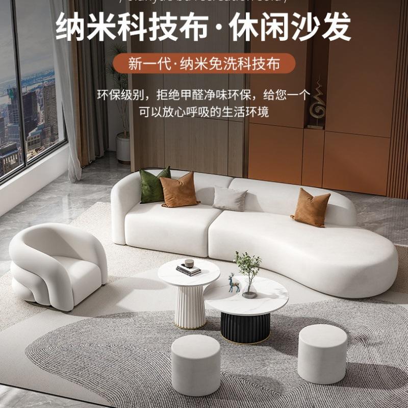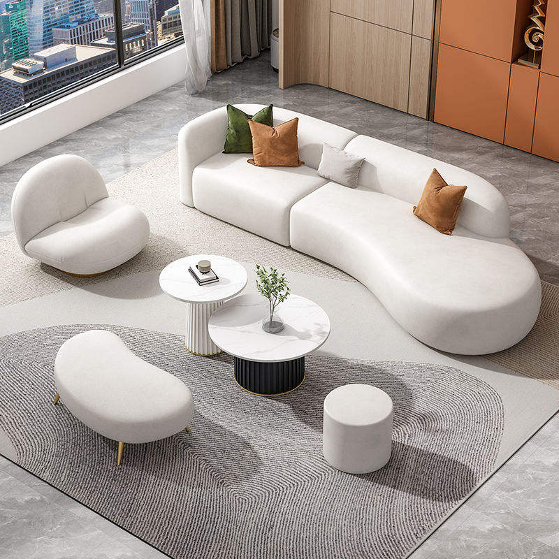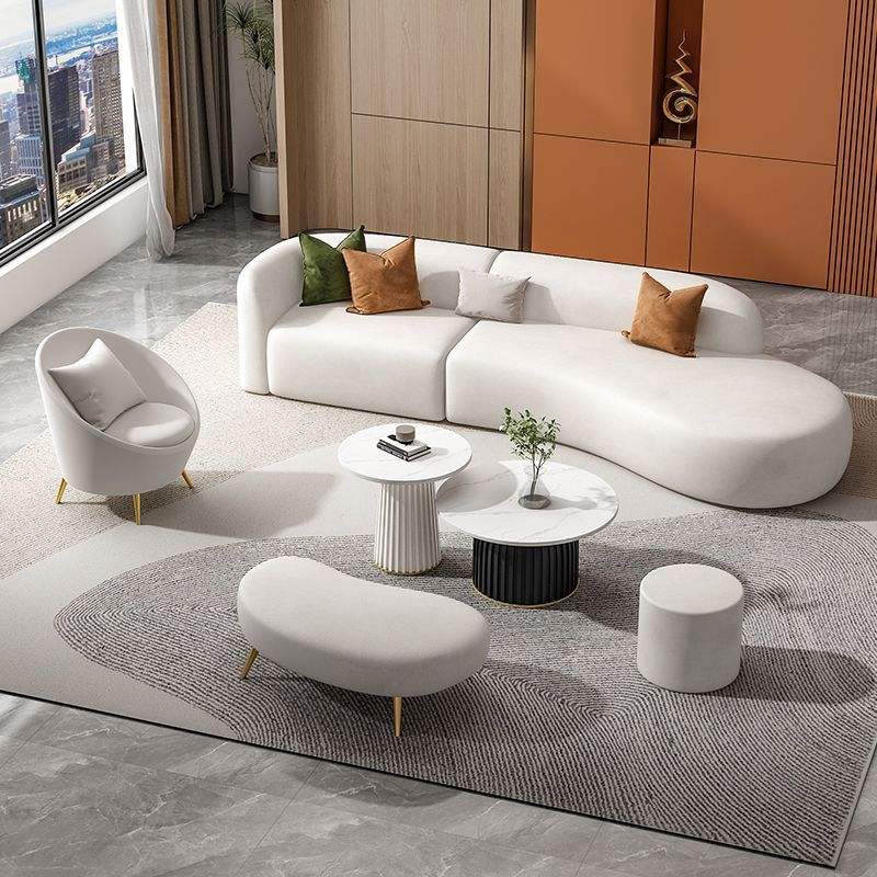 Ensemble de canapés courbes en tissu technique crème, meubles modulaires pour salon